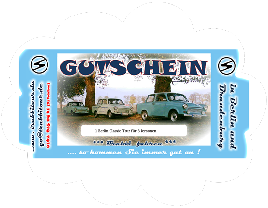 Für alle, die ein unvergessliches Erlebnis verschenken wollen, haben wir den Gutschein für trabbitour erfunden. Der ist klein, gut zu verpacken und kommt immer gut an!